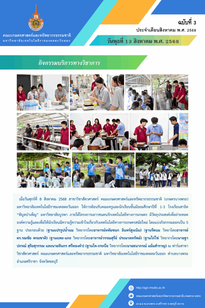 เรามาทำความรู้จักกับ…คณะเกษตรศาสตร์และทรัพยากรธรรมชาติ มหาวิทยาลัยเทคโนโลยีราชมงคลตะวันออก กันนะคะ…❤️